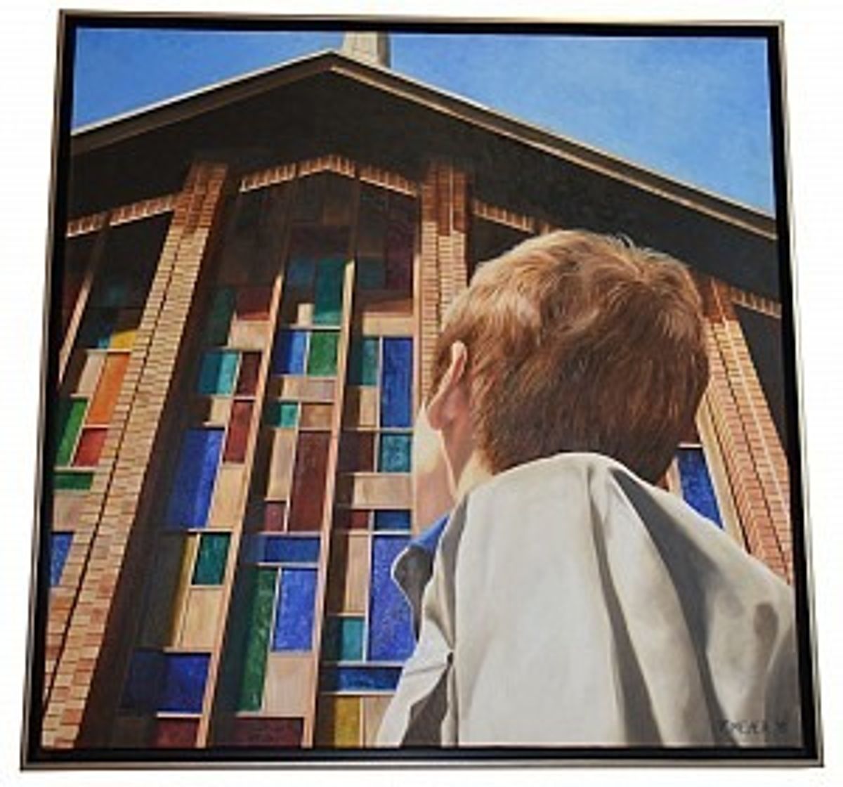 Tessa was commissioned during the College 60th Jubilee celebrations this year to produce an artwork for the new MacFarlan Centre. Working in oil on canvas, Tessa’s remarkable piece of work, ‘Upward Contemplation’ has now been installed, depicting a young student gazing upwards at the Chapel.