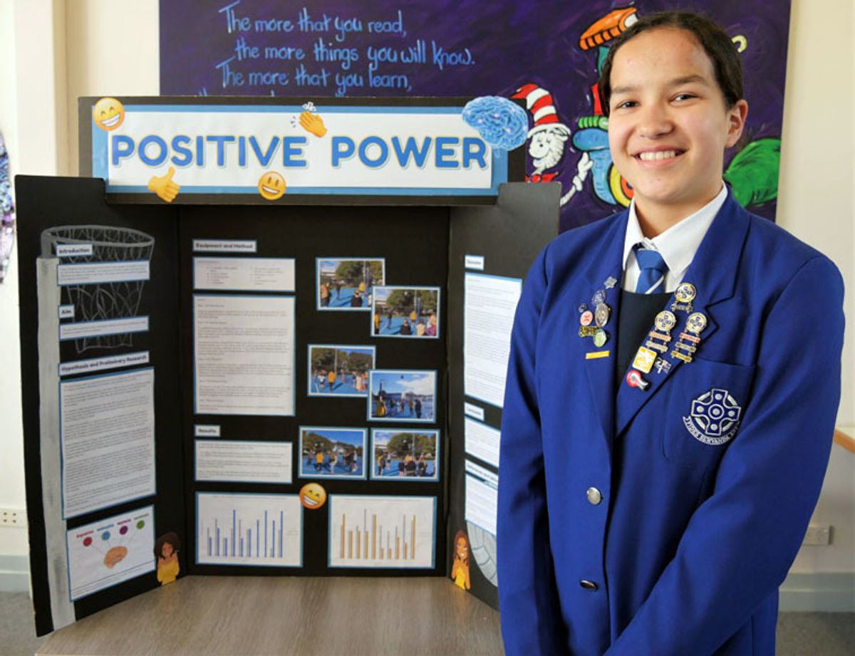 Year 8 student, Amelia Duff was awarded second place in the category, ‘Human Behaviour’ with her project, ‘Positive Power’. In this project she investigated whether performance is affected by either positive or negative external influences. She tested this by watching netball players in action, her peers and others around her as she went about her daily routines. In her conclusion, she found that ‘by adapting a positive attitude, we can ‘hack’ our brain to improve our performance in relationships, school and even on the netball court when shooting the winning shot of the game.’