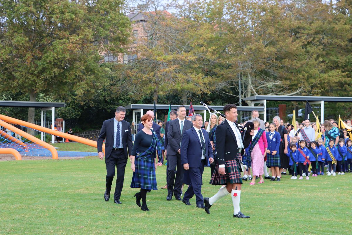 As is tradition, the morning began with a grand procession led by the College 2nd Pipe Band. As the first note from the Pipes and Drums filled the air, excited energy filled the girls with anticipation, setting the tone for the day. The official party with VIP guests from all the Saint Kentigern Schools were the first in the procession, closely followed by the Preschool girls and, finally, the Girls’ School in their clans, two for each of the four houses. The party followed the Pipe Band through the grounds, down Shore Road, and into the gymnasium for an assembly.