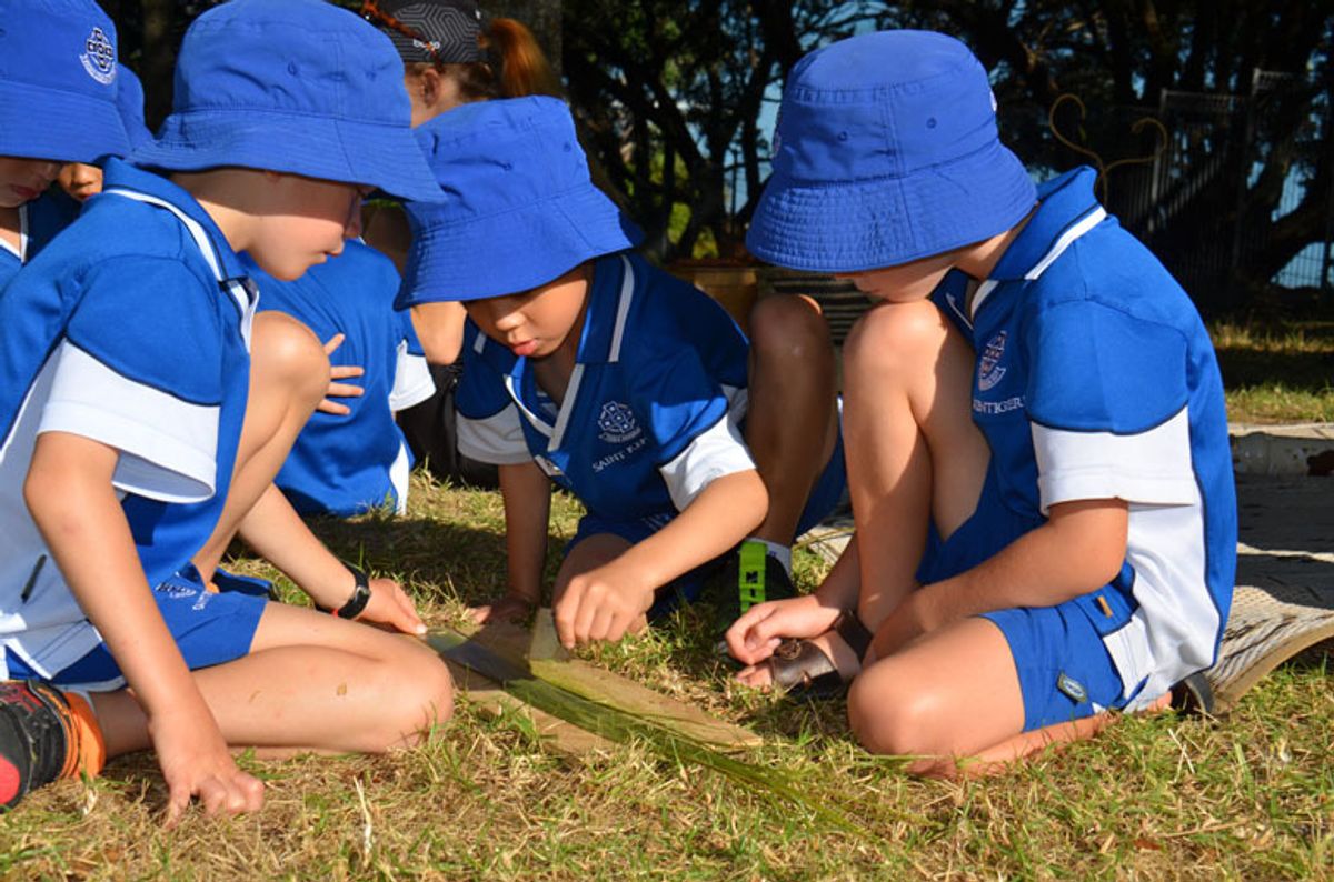 Making ropes from flax leaves required the boys to work co-operatively. They learnt how to strip and prepare the flax, taking responsibility for handling the ‘stripping knives’ – a section of saw tooth – working together very sensibly to soften the fibres, before twisting the loosened fibres into long ropes and testing its strength. The boys took turns communicating their ideas to each other, learning which ideas worked best.