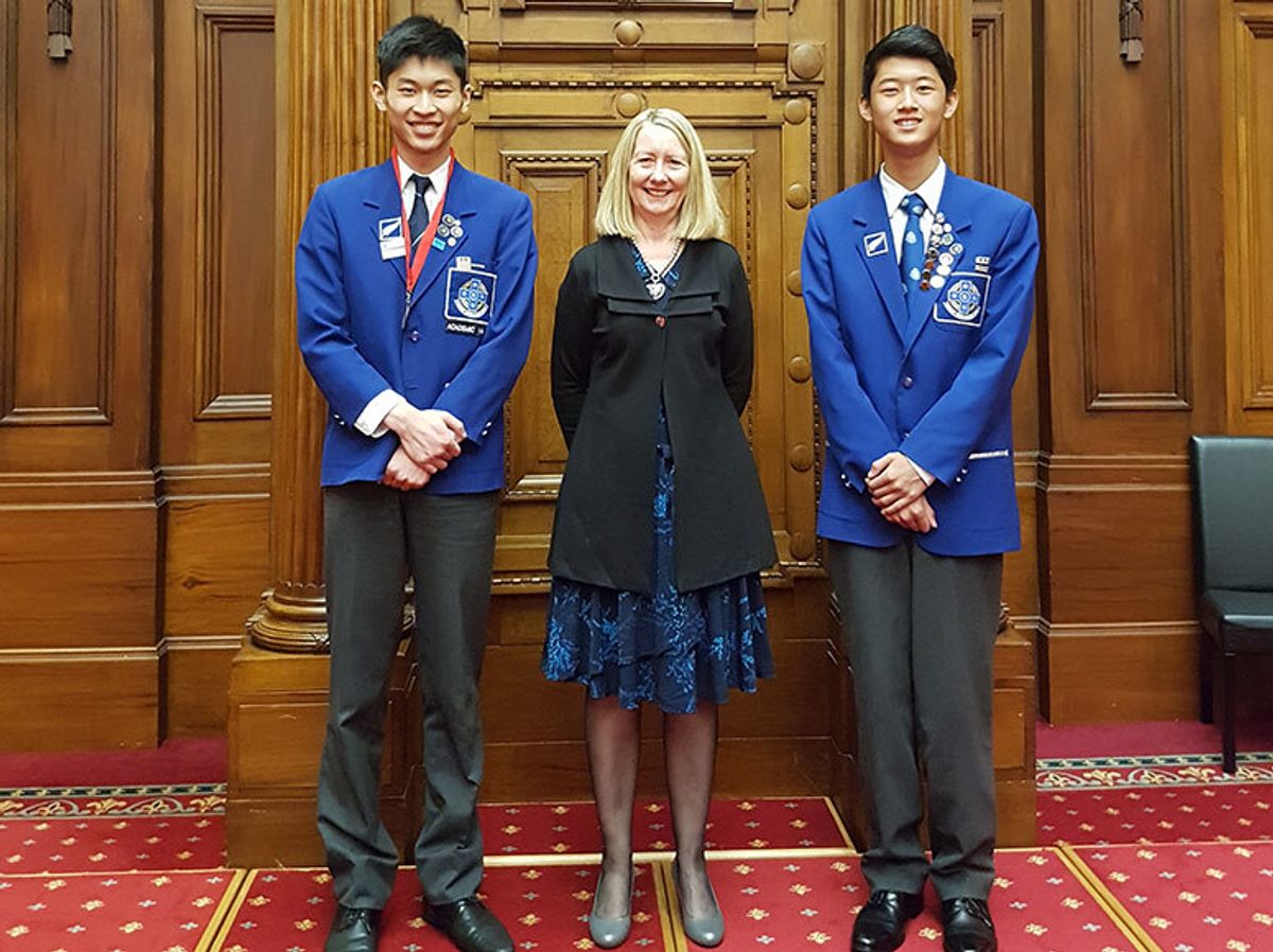 Two of our students who achieved at the highest level in the 2016 NZQA Scholarship examinations were recognised at an award ceremony at Parliament House in Wellington this week. Kevin Shen and Andrew Chen attended the ceremony with Senior College Principal, Mrs Suzanne Winthrop and their families.