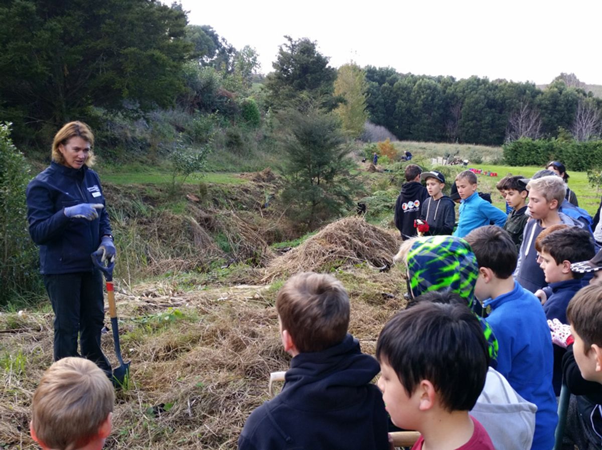 As part of the school’s Trees for Survival tradition, a large group of eager Year 6 boys were sent out to plant our young seedlings, to make a difference to the environment. This year, the boys planted around a stream on a farm that flows on to supply water to many farms in the Matakana area. The trees that the boys planted will eventually grow to provide a good environment for birds and insects, stop erosion on the river bed, improve soil quality and the infiltration of rain water into the stream.