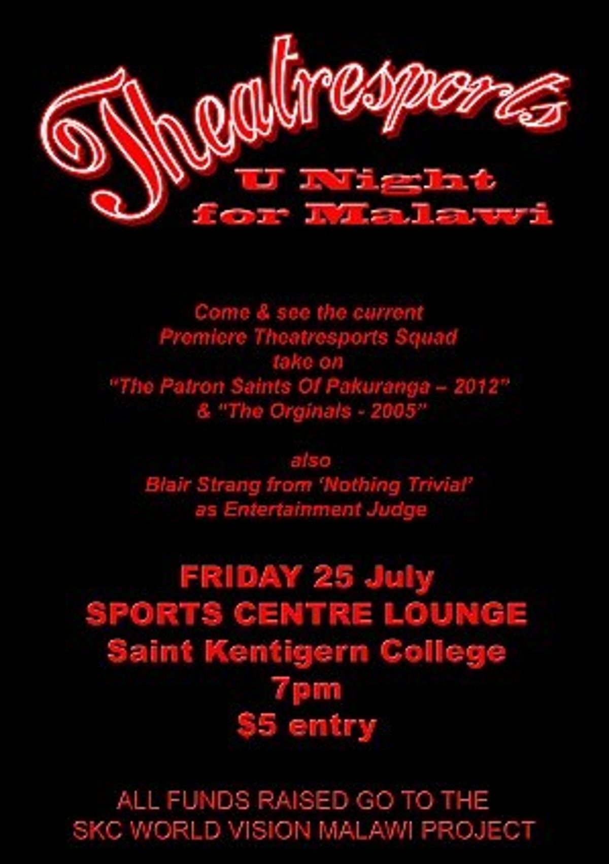 On Friday July 25, the Sports Centre Lounge at the College will host a unique and very entertaining cultural event. “U Night For Malawi” is a Theatresports event which will involve Saint Kentigern’s best players from the last 10 years competing against this year’s Premiers Theatresports squad; an anticipated hilarious night showcasing the old and new of Saint Kentigern Theatresports fame.