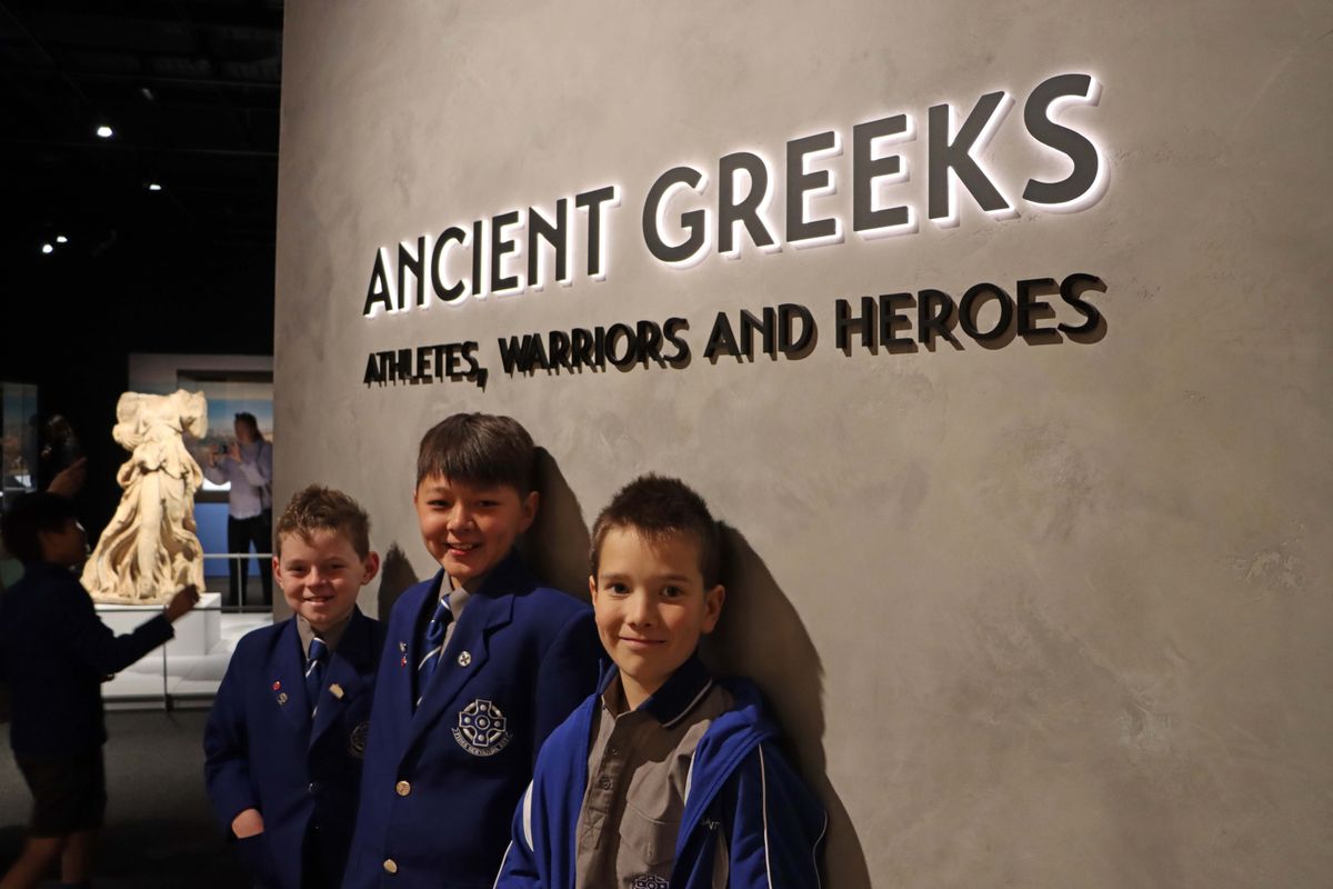 Under the supervision of parent helpers and teachers and a worksheet on hand to guide their journey through the exhibit, the boys swiftly darted through the ancient Greek statues, weapons, jewellery and pottery looking for answers to prompts. A popular artefact among the boys was the Spartan military armour, with many stopping to marvel at the bronze coats that are usually only seen in movies.