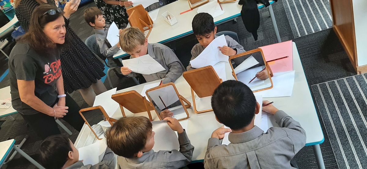 One of the first things the boys learnt about was the relationship between the eyes and the brain in helping us write. They were asked to trace around a star while only looking at themselves in a mirror. This simple exercise demonstrated the complex interplay between our visual perception and the brain's motor control of our movements. The boys were amazed at how their eyes and brain worked together to help them write.