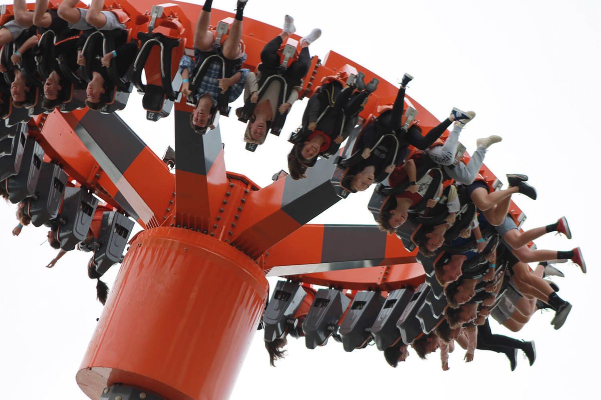 Dodgem Cars bring Newton’s third law of motion into play (for every action there is an equal and opposite reaction). The Fear Fall takes into account Galileo’s classic experiments that led to the finding that all objects fall at the same rate, regardless of their mass. As for the ‘Invader,’ students were tasked with calculating the maximum centripetal acceleration!