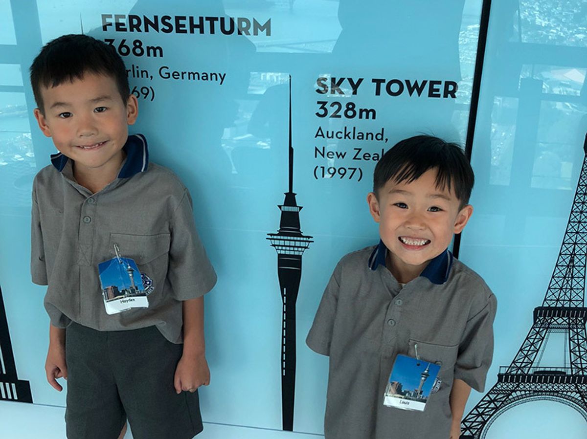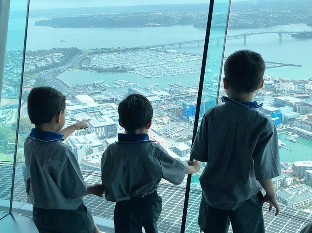 When studying the unique and special features of our city of Auckland, what better way to get an overview that to see it from above. Our boys in Year 1 got a special birds-eye view of the city below when they whizzed to the top of the Sky Tower by high speed lift.