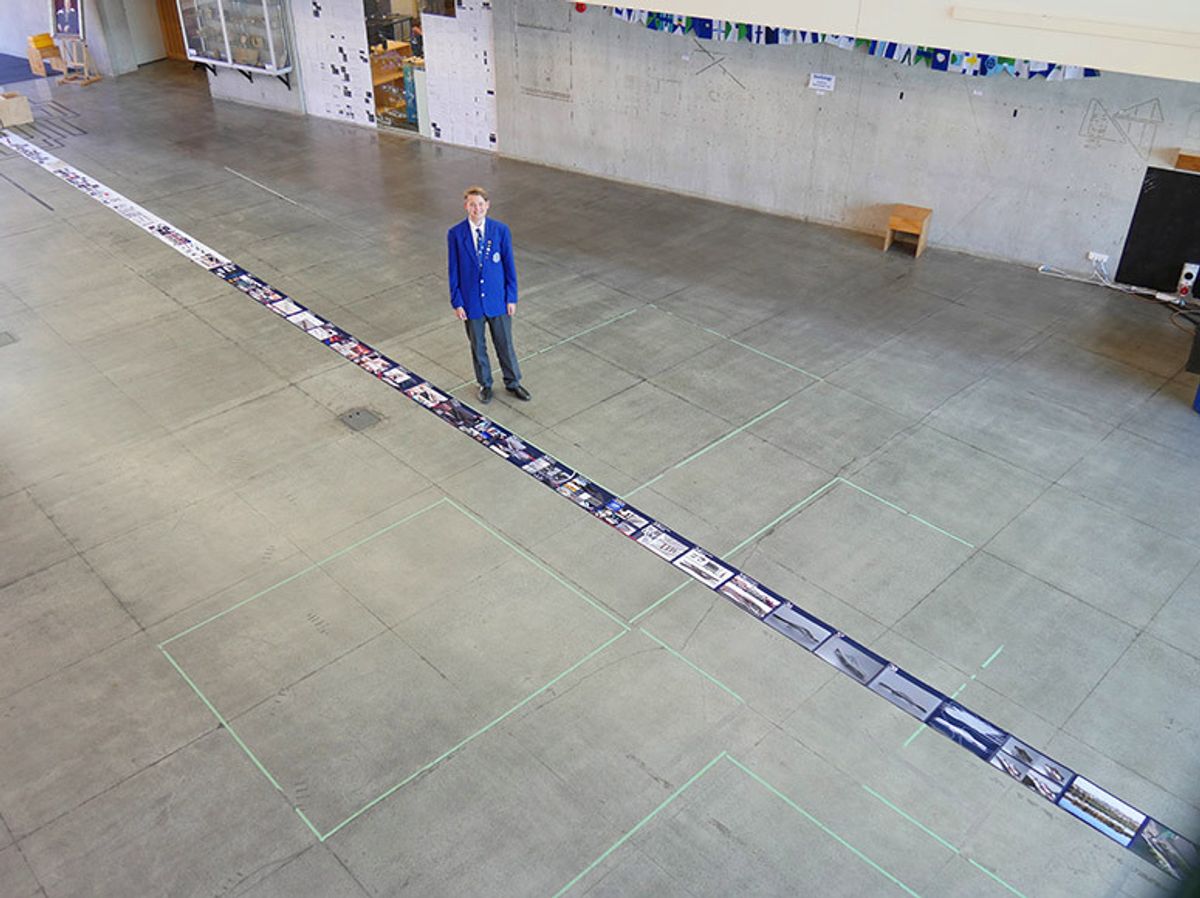 Christopher said he created his work using Inkscape software with the pages printed out in seven long strips on the College long-form printer, which he then carefully cut and secured in place. It was no easy task!