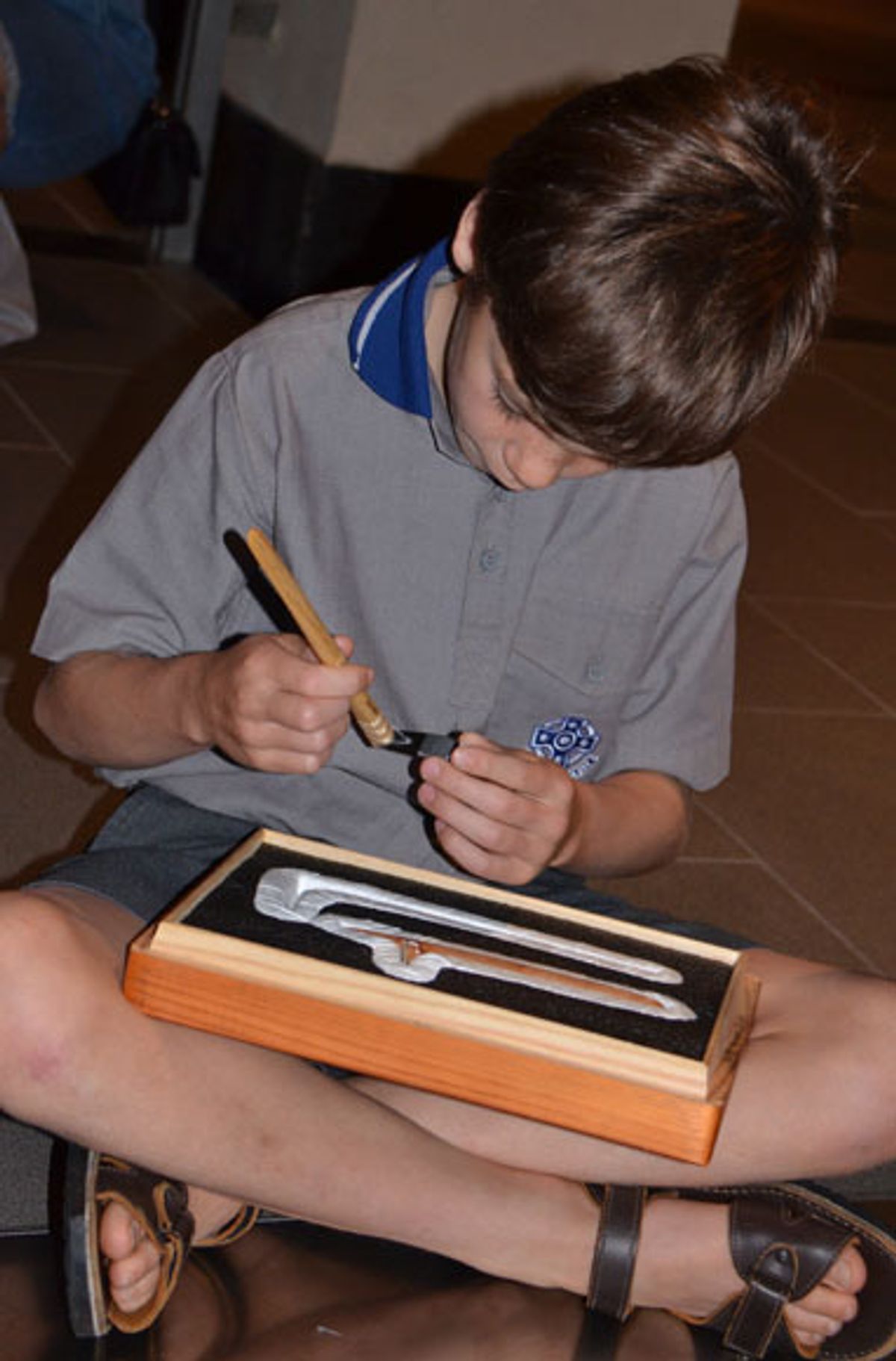 The boys were fortunate to spend time with the Museum Educators, learning the connections between the languages and artefacts across the Pacific as far as their origins in the region of Taiwan. They were told that visitors to the museum were usually only able to ‘ponder beyond the glass’ but the boys were very fortunate to handle some exhibits. Another highlight was hands-on with a replica hand drill, with the boys learning how to use applied energy to make the spindle spin to drill a hole as would have been used when building the waka.