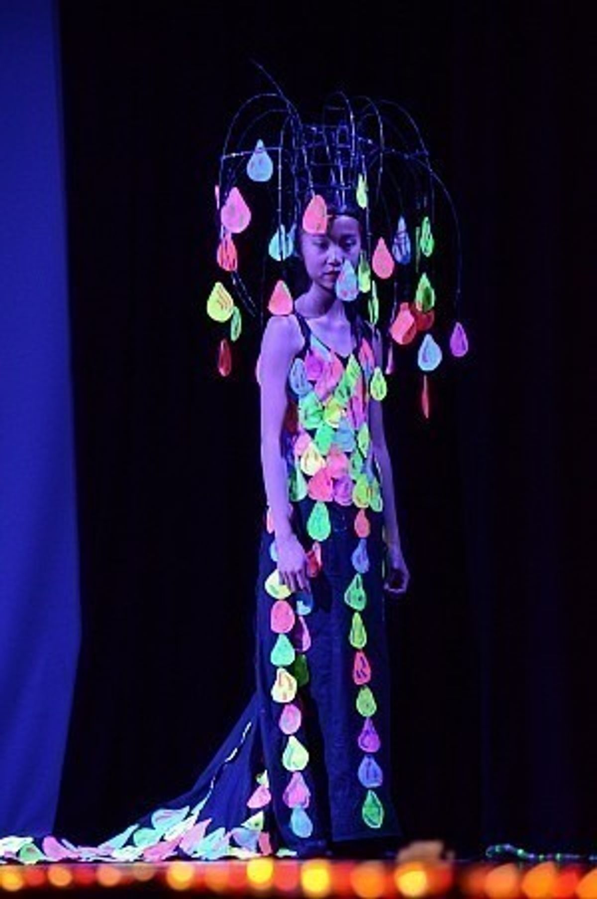 On the Sunday prior, ‘people mover,’ Kiri Whitford-Joynt from ‘ID with Style’ put our student models through their paces on the catwalk while their fellow designers looked on, making last minute touches to the costumes. With only a couple of chances to get it right, the transformation in poise and confidence in our students, under Kiri’s tutelage, was remarkable. Kiri went on to take charge back stage on the night of the show organising the models dancers to be on to the stage at the right time – quite a feat when you appreciate the size of some of the costumes!