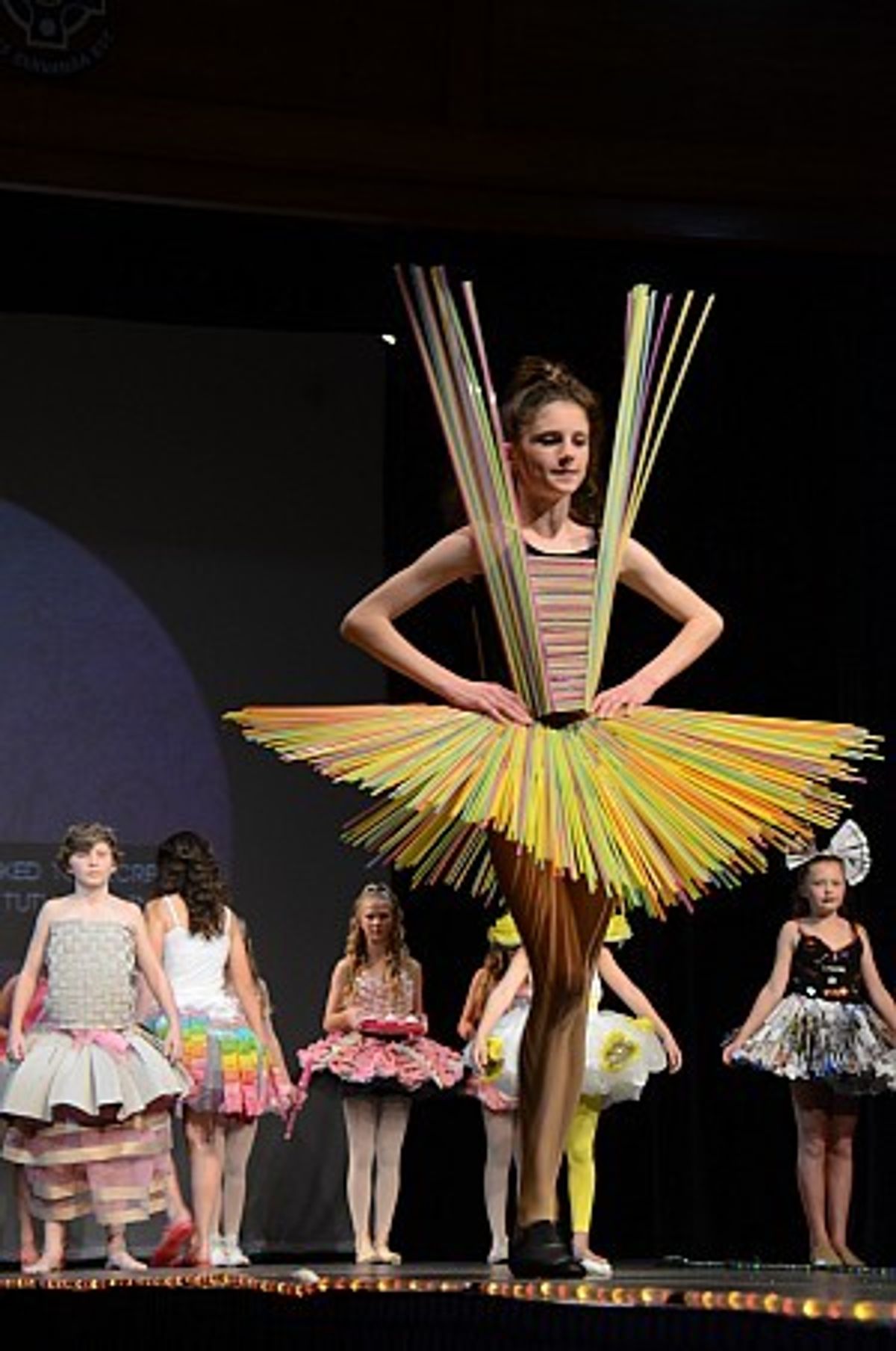 Whilst selecting the winners in each category was difficult, to name the two supreme winners was even more so. Winner for Year 7 and 8 came from a new section this year, The Tutu and was won by Tess Elliot who designed and modelled, ‘The Last Straw.’ An elegantly simple outfit with rigid, clean lines made entirely from drinking straws. Tess also had a second win with Read Between the Lines in the Love of Books section.