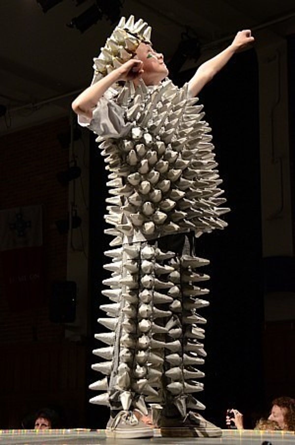 The students welcomed five special guests for the evening. Media personality, Wendy Meyer was the continuity announcer, setting a relaxed yet totally professional tone for the performers. The four judges were Ros Craw, Head of Visual Arts at Somerville Intermediate; Ann Skelly from Waiheke Island, a full time artist who has entered eleven of her own garments into the World of Wearable Arts (WOW) show and has been successful with ten of them; Melody Brook, a local artist who has also been a finalist at WOW; and Anne Lohrentz who is a Design and Innovative Pattern Cutting lecturer at AUT whose tertiary students have achieved several accolades in design competitions.