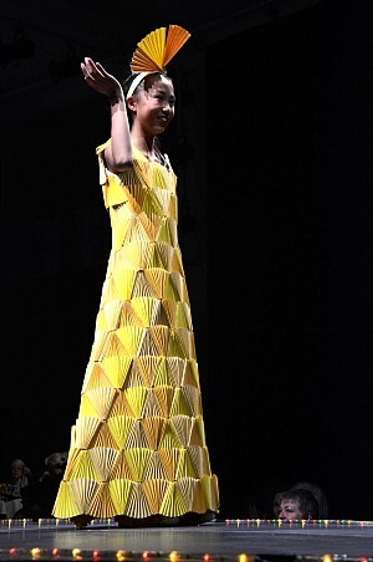 Emma King also deserves a mention. Like Supreme Winner Tess, Emma entered two fantastic designs and won with both of them. Neon Raindrops shimmered in the Illumination section and in the Colour section, a ‘FAN-tastic Ray of Sunshine’ made from many folded paper fans in shades of yellow was an elegant stunner.