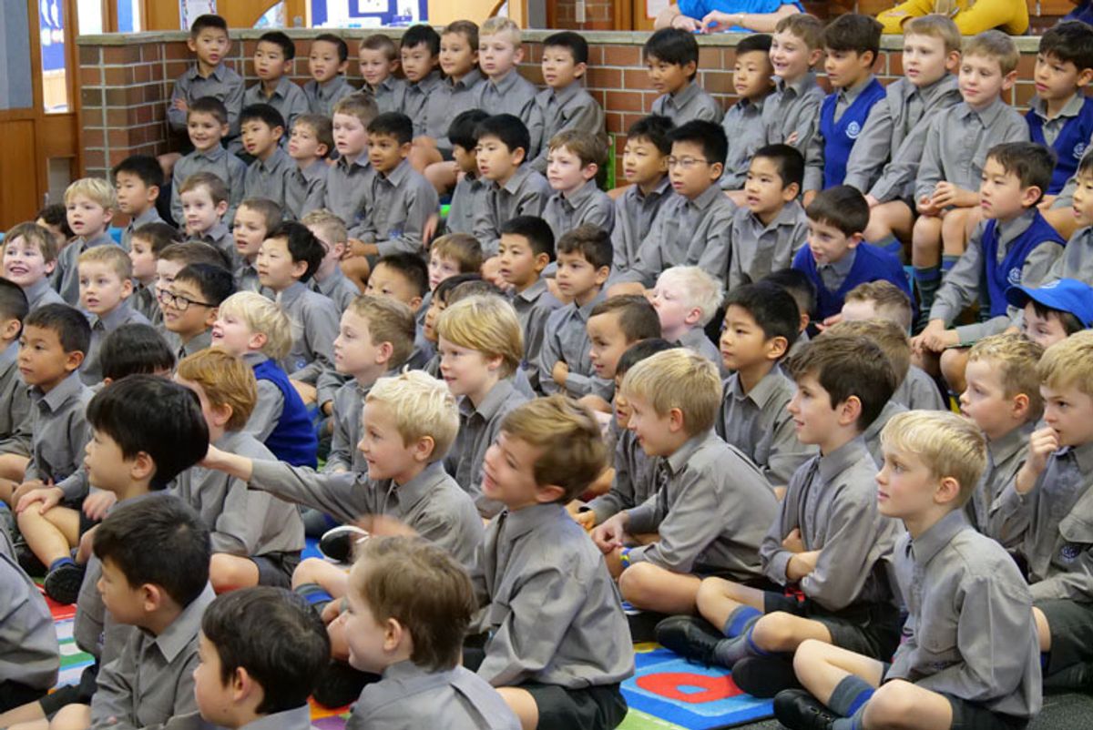 What only has three legs and one eye, likes to listen to country music, is quite tall and slim, and smells really, really bad? A stinky, dinky, lanky, honky tonky, winky, wonky donkey of course! Armed with his guitar and a number of puppets, well-known children’s author and singer-songwriter, Craig Smith delighted our Junior School boys when he visited the Boys’ School.