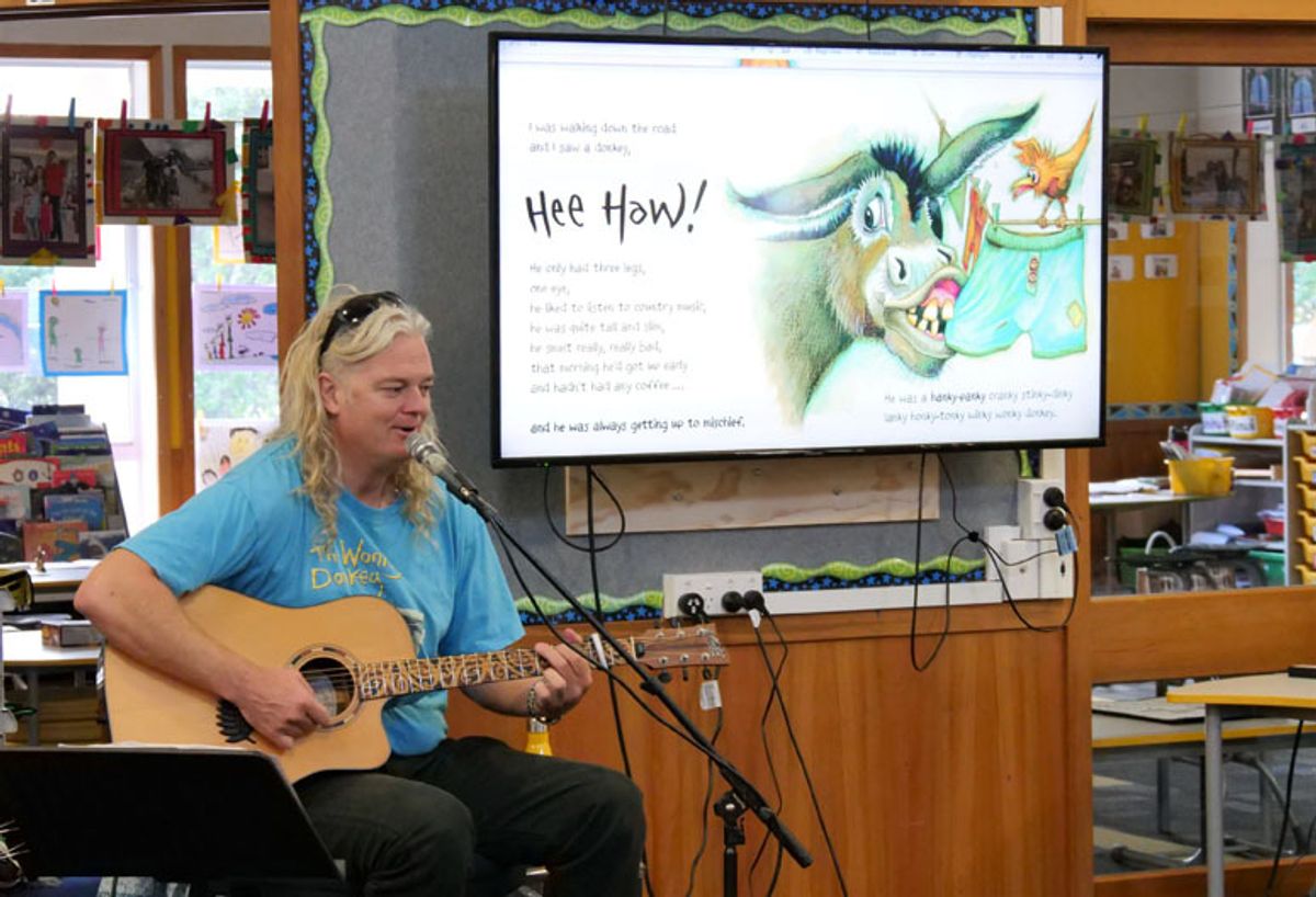 Singing from his repertoire of humorous and catchy songs, Mr Smith performed all his children’s books, starting with the absolute favourite ‘The Wonky Donkey.’ The boys enjoyed joining in on the actions and singing along, with some students assisting Mr Smith by being a puppeteer. This book has always been popular in New Zealand but shot to international fame when a video of a giggling Scottish grandmother, reading the book to her grandson, went viral! Sales of the book now top almost six million worldwide, it has been translated into several languages and given Mr Smith the opportunity to tour extensively overseas.