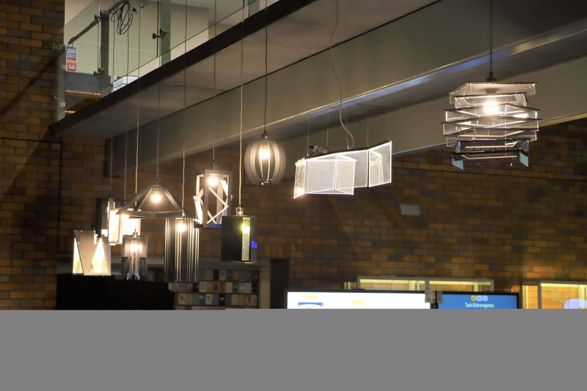 The evening began with a fashion show from the Fashion and Textiles Design students showcasing pieces of work that cuts across styles and combines creative use of fabric. The runway which was placed at the center of the Atrium was lined with planter boxes made by our Product Design students. Hanging from the bridge was designer lamps, and another room filled with light installations, produced by our creative Product Design and Design and Visual Communication students. Throughout the evening, guests were treated to a variety of savoury and sweet finger food items which were served on platters by our talented Food Technology students.