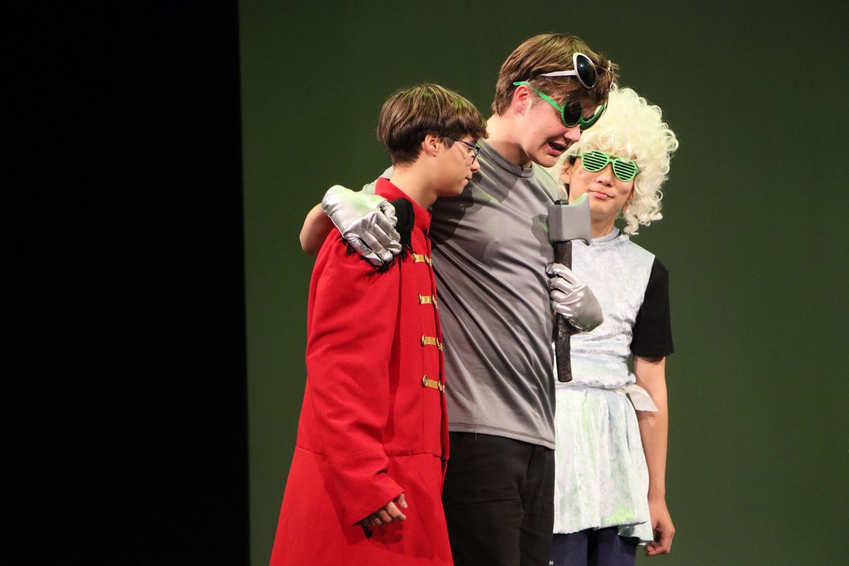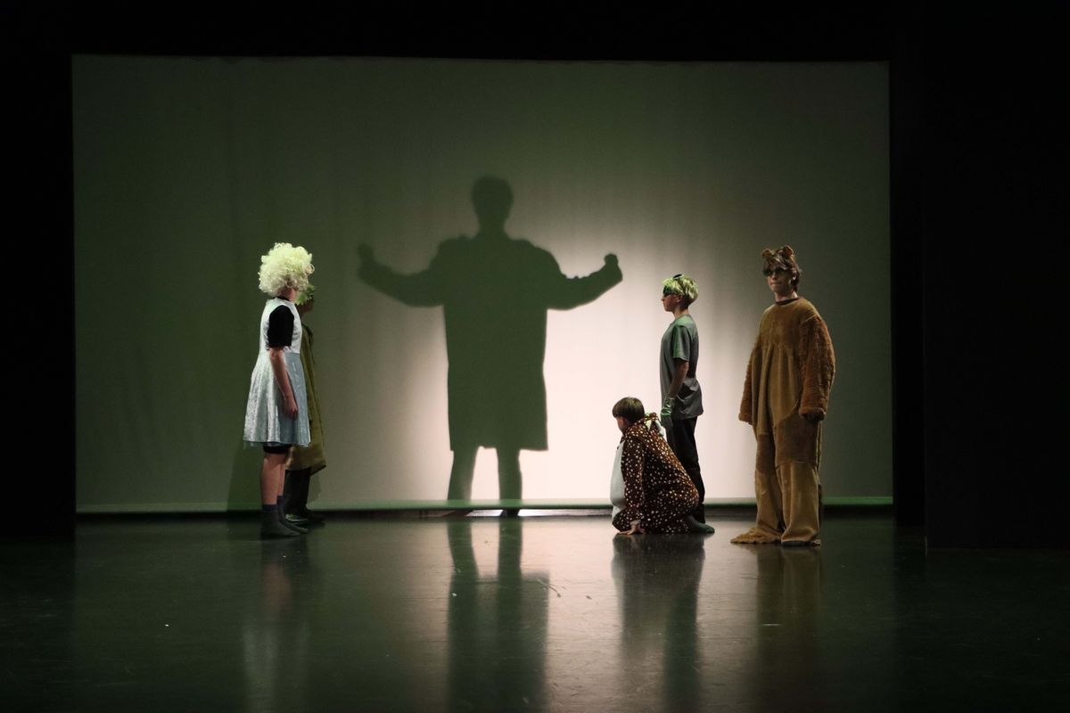 Dave Sheehan’s class followed with a brisk and irreverent adaptation of The Wizard of Oz. The production reached its pinnacle when the Great and Terrible Oz loomed in silhouette behind the cyclorama, confronting both audience members and Dorothy she was sent to challenge the witch.