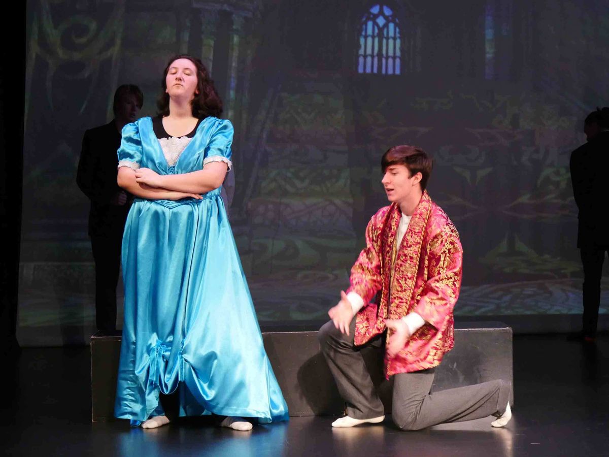 To emphasise the confusion, Year 12 staged the play with five pairs of actors playing Rosencrantz and Guildenstern and three taking on the role of The Player. The troupe of players played their key role and minor court roles, sometimes in the same scene.