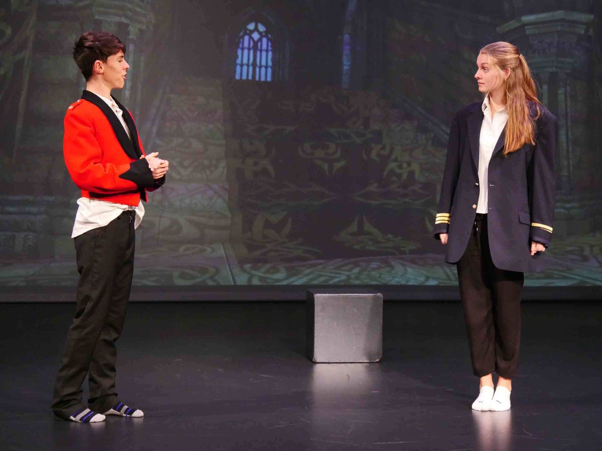 Ms Rigold’s class staged Tom Stoppard’s classic absurdist ‘play within a play’ that centres on two minor characters from Shakespeare's Hamlet, the courtiers Rosencrantz and Guildenstern. The action took place largely ‘in the wings’ with the relationship between the two plays summed up by the ‘The Player’ who says, ‘We keep to our usual stuff, more or less, only inside out. We do onstage the things that are supposed to happen off…with every exit being an entrance somewhere else.’