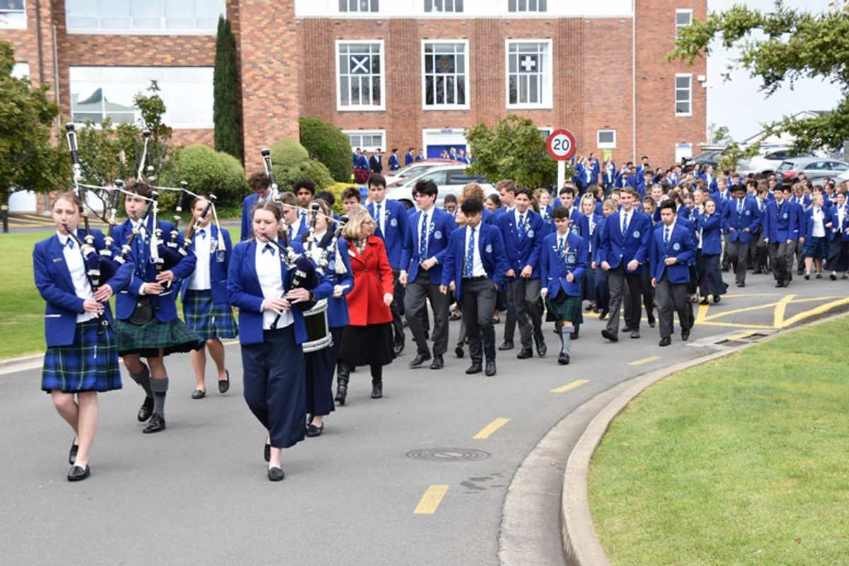 Following this, the students were piped to the top field by Year 13 students, Kate Pennycuick, Fayth Doherty, Alice Smith and Andrew Sterritt where they created a human ‘2019.’ Once completed, the students moved on to Bruce House to share a final brunch together. It was heart-warming to see many Middle College Students cheering and waving from the classroom windows as the Year 13s made their exit.