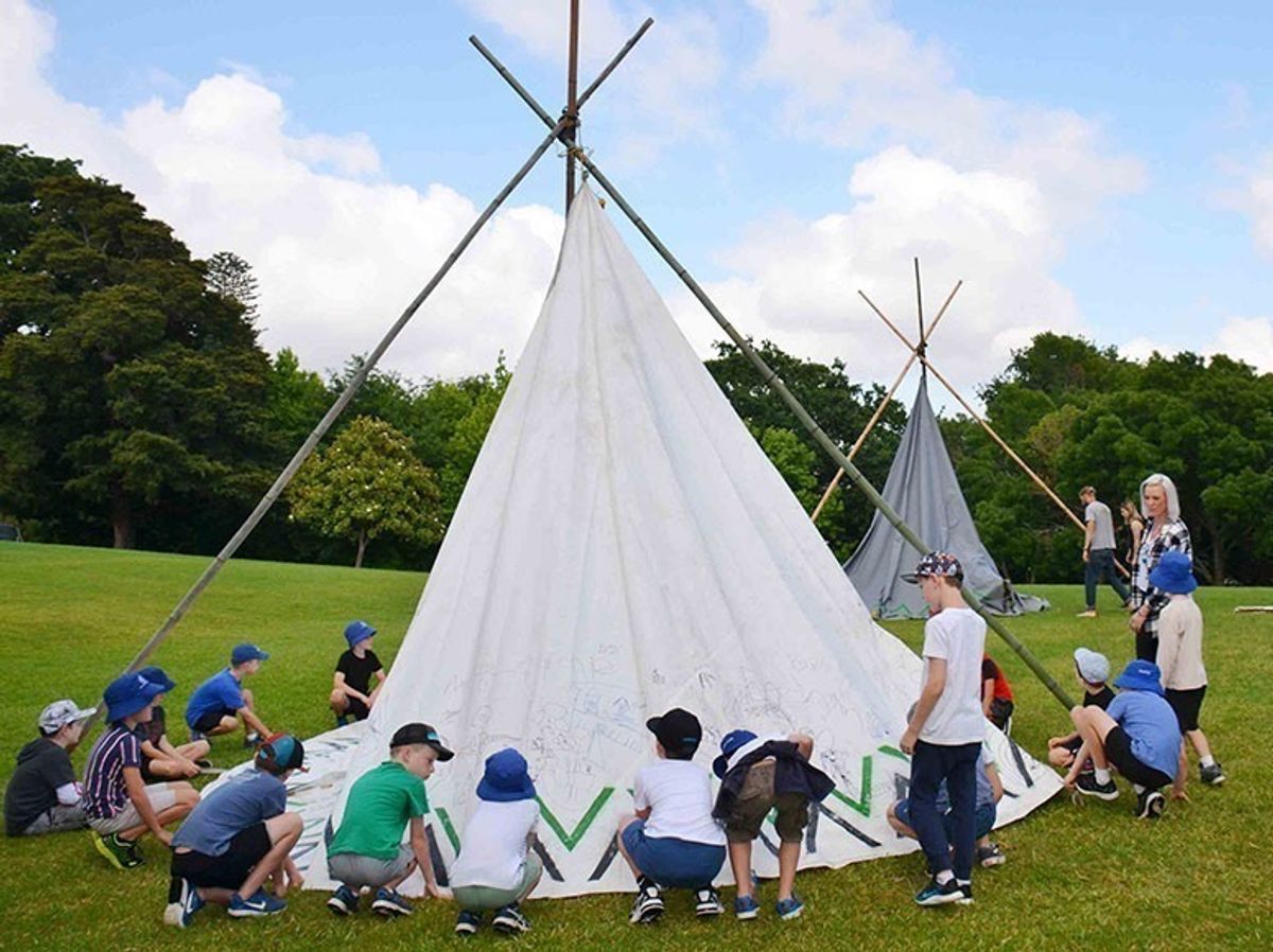 Using the expertise of Todd Dorset (brother of staff member, Kurt), the first day began with the construction of two enormous teepees on Roselle Lawn! Standing metres high, this required careful teamwork by the boys to manoeuvre the giant bamboo supporting structures into place. One bonus of the recent rain – the tent pegs went in easily, with each boy taking turns to hammer!
