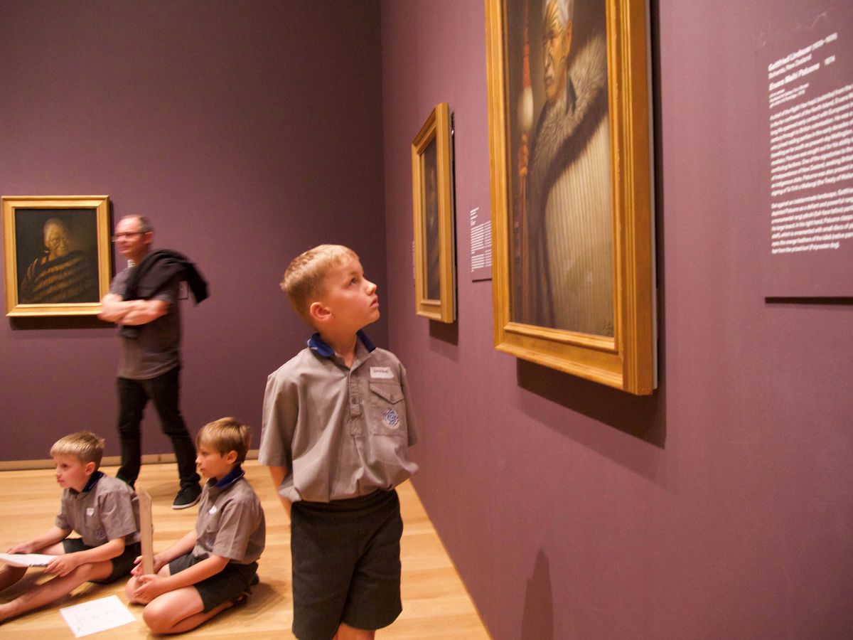 The Art Guide encouraged interaction with these paintings with the task of identifying key features hinting at who the portraits depicted. The boys looked for Rākau (weaponry), Pounamu (greenstone), Moko kauae (face carvings), huia feathers, and Kākahu (cloak). Through these clues, the boys were shown how to infer the portraited people's socio-economic positions, their jobs, and whether they had a leadership role in their community.