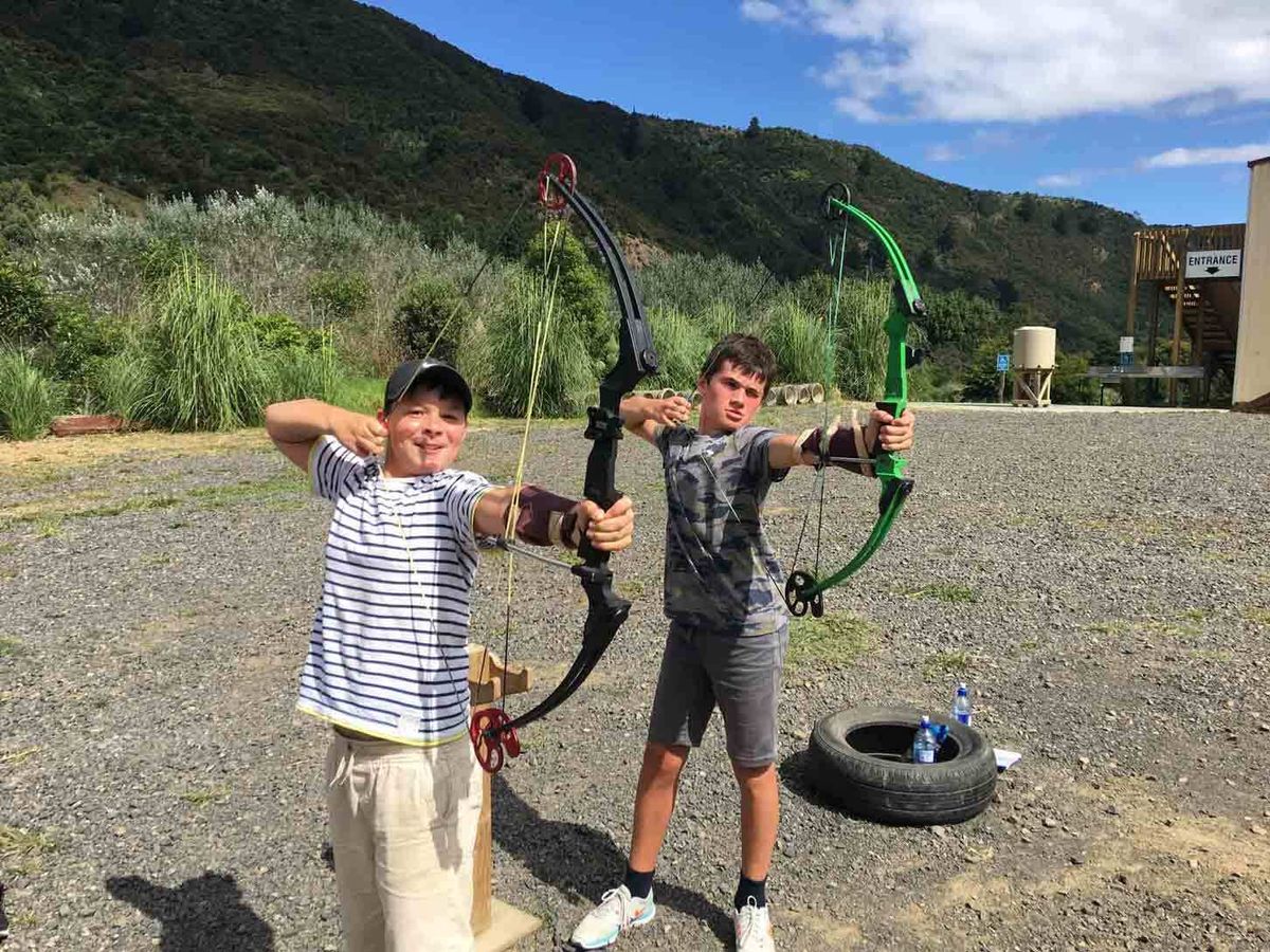 The day of the long-anticipated camp to Kaueranga Valley, just inland from Thames on the Coromandel Peninsula, arrived and the Year 6 boys clambered aboard the bus for ready to be challenged in the outdoors. They were very excited to learn of the activities they had ahead of them: kayaking, go-karting, BMX riding and archery to name a few.