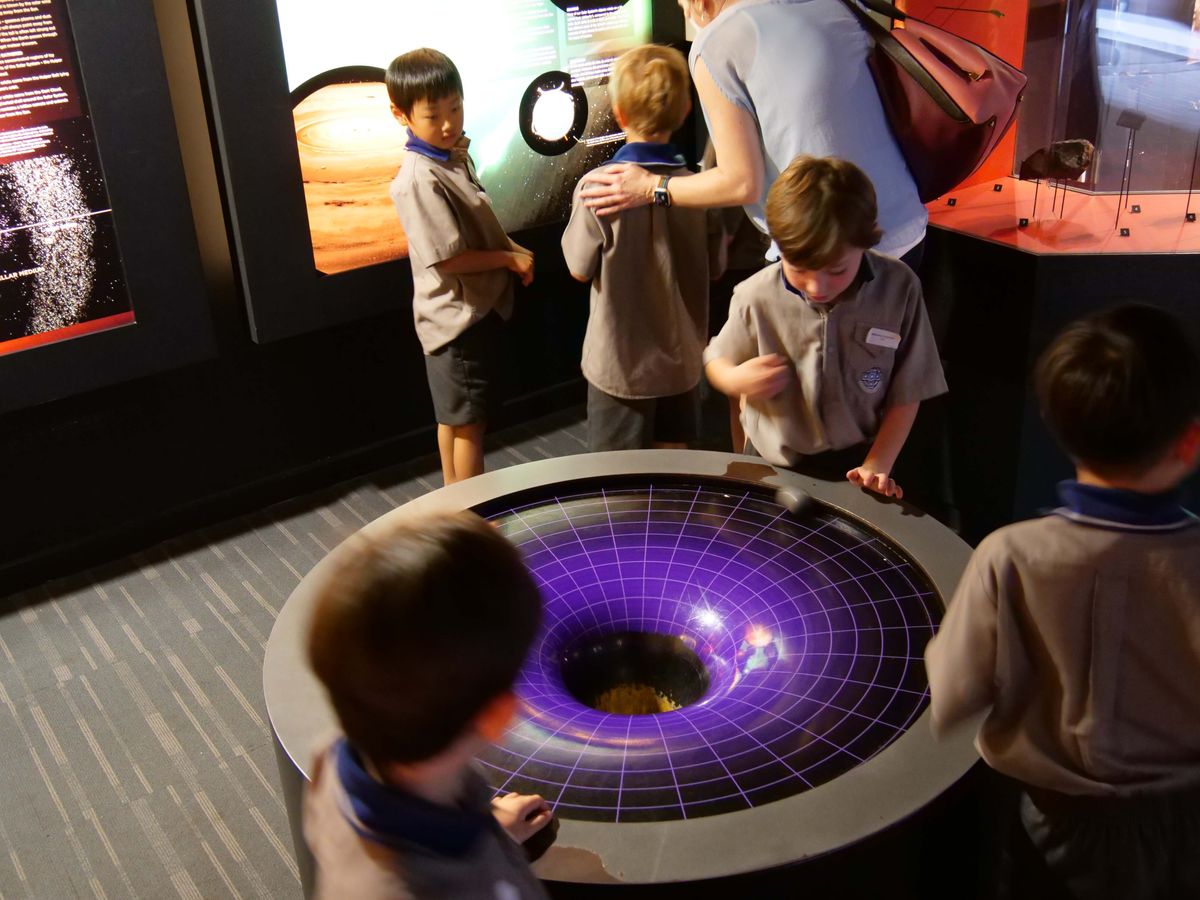 On completion of the education session, the students were let loose in the museum exhibition section of Stardome. Split into groups, they were given some challenging quiz questions and only 20 minutes to explore the artefacts and find answers. The black hole model captured the attention of many boys, who were captivated by how objects disappeared into nothingness.