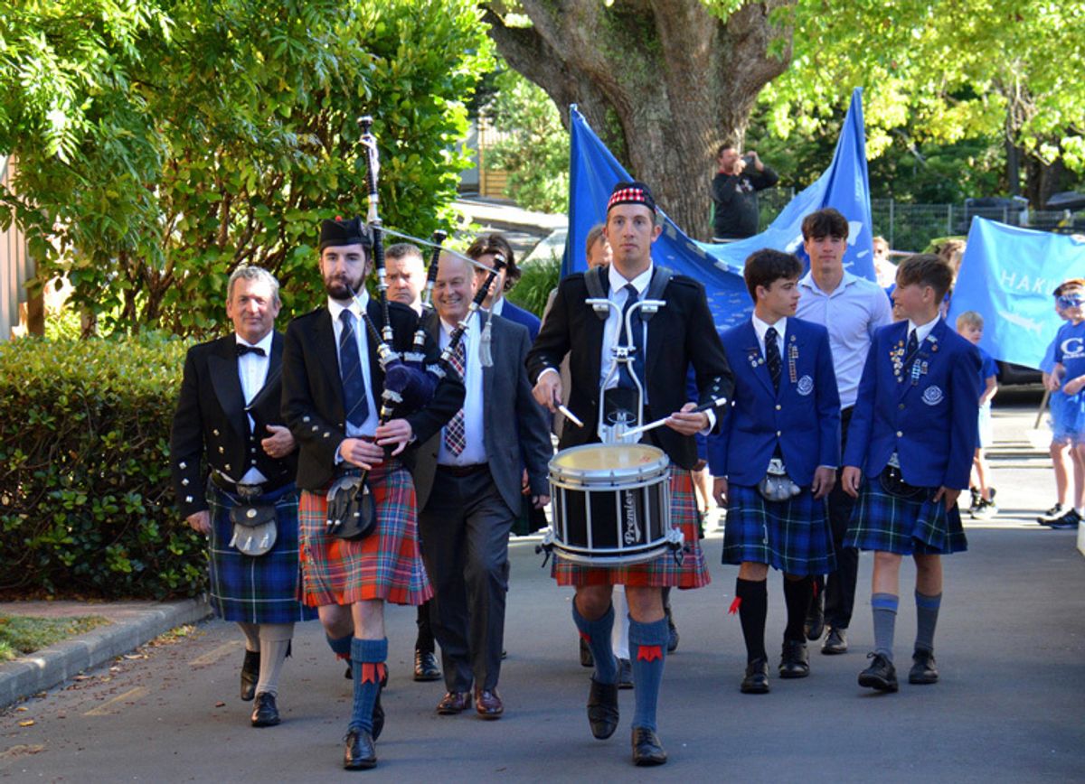 The day started early with a gathering of the twenty clans, five for each House, each with a change of name this year to reflect a mix of our Scottish and New Zealand’s Maori heritage. Honouring the story of St Kentigern as a boy, the symbols of his legend - the bird that never flew, the tree that never grew, the fish that never swam and the bell that never rang – were adopted by the Houses. Cargill chose the name of trees for their five clans: Manuka, Totara, Kauri, Rimu and Pohutukawa. Chalmers chose the name of fish: Paikea, Paikea, Haku, Mako and Whai, and Hamilton’s clans chose the name of birds: Huia, Kea, Tuturiwhatu, Miro Miro and Kahu, whilst the Wishart clans took on the name of bells (instruments): Tupurangi, Nga Karanga, Nga Pere Koura, Patatara and Wha Katangi.