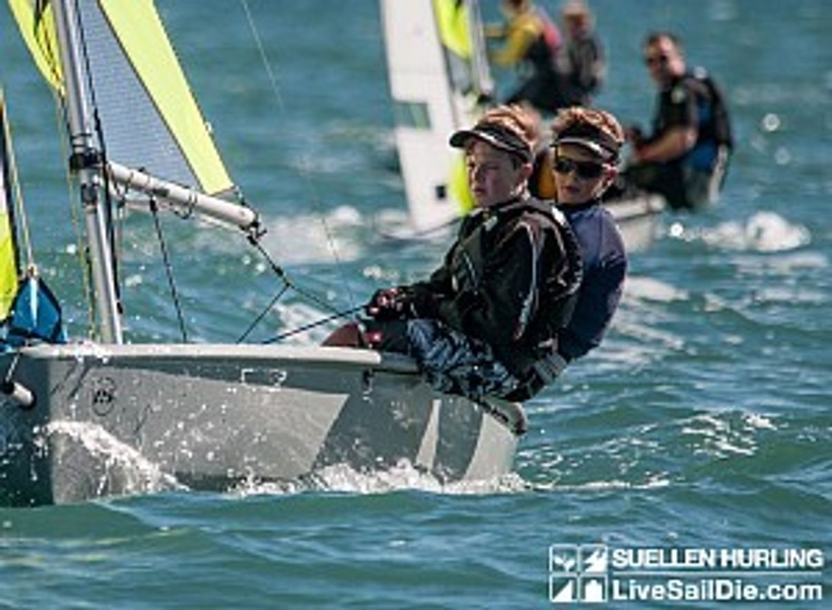 In complete contrast, the following day brought light winds and sunshine for the four windward-leeward races, followed by a longer race. When the overall results were tallied, Henry and Hamish finished in second place in the U16 division.